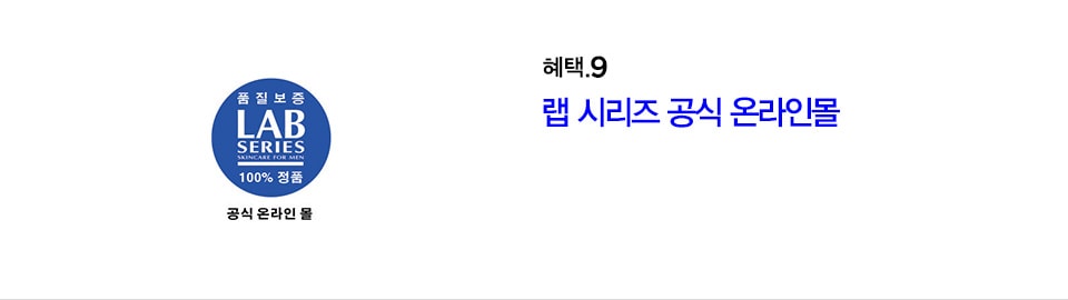 공식몰에서 회원 가입 후 처음으로 제품 구매 시15% 웰컴 할인 혜택을 드립니다. 공식몰에서 회원 가입 후 재구매 시5% 상시 할인 혜택을 드립니다. 공식몰에서는 최신 제조 상품으로주문건이 배송되고 있습니다. 생일을 맞은 고객분께 B-DAY 기프트를증정 드립니다.*SMS서비스 수신 동의한 고객에게 B-DAY 쿠폰 코드 발송 단 하나를 구매 하셔도 무료 배송서비스를 제공해 드립니다.*15,000원 이상 제품 구매 시 적용됩니다. 전 구매 고객에게기프트 박스를 제공합니다.*주문시 옵션에서 선물포장 선택 시에 적용됩니다. 공식몰 전용 제품을 구매할 수 있는 기회!특별한 제품 및 단독 세트를 확인해 보세요. 공식몰 단독 진행중인 이벤트 및랩 시리즈 글루밍 클래스 회원 대상 클래스에참여할 수 있는 기회를 제공합니다. 공식 온라인 몰로써안전한 구매 환경을 제공해 드립니다.* 본 인증마크는 랩 시리즈 공식 온라인몰, 리테일러몰에만 부착할 수 있습니다.* 본 사이트에서는 랩 시리즈 정품을 구입하실 수 있습니다.